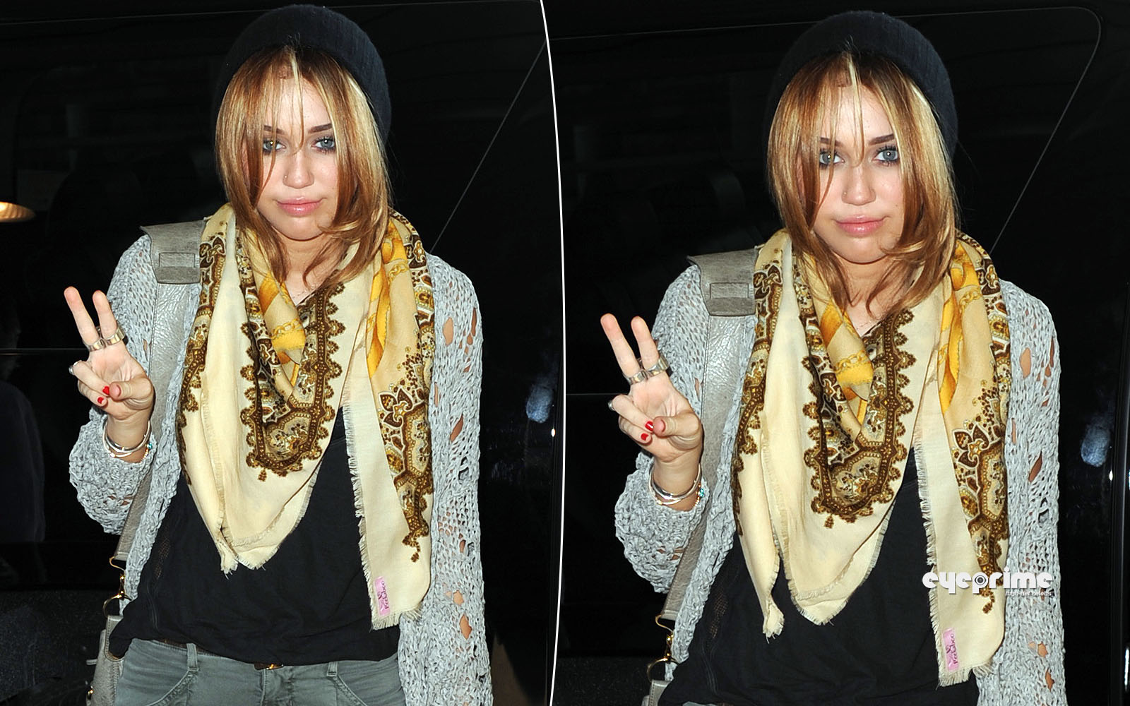 Miley Cyrus and her boyfriend Liam Hemsworth arrive at Laguardia Airport as they prepare to depart from New York City, New York on June 18, 2010.