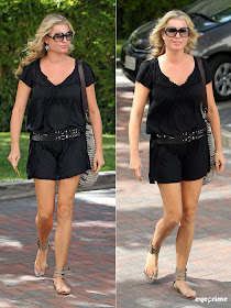 Rebecca Romijn heads to a meeting at the William Morris Agency building in Beverly Hillls. The actress, who is married to actor Jerry O'Connell and is the mother of twin girls, looked stunning in an all black outfit and star shaped earrings. August 27, 2010