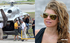 Fergie and Josh Duhamel arrive via Helicopter in St. Barths, Dec 29